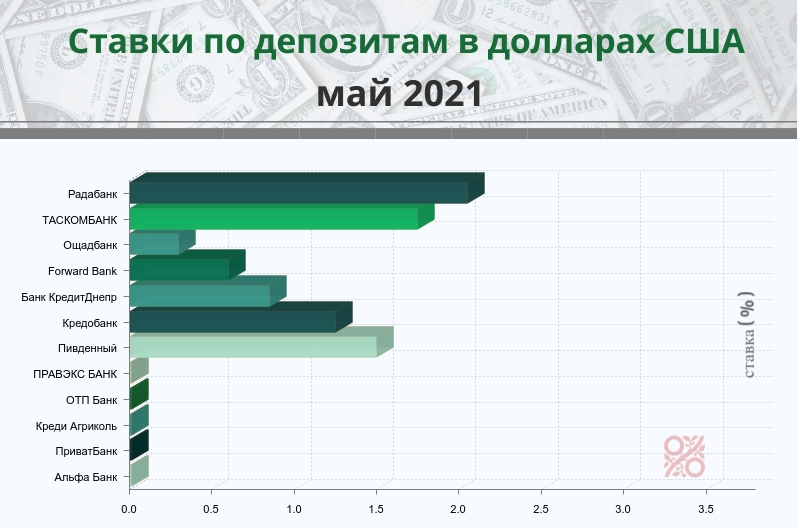 В мае ставки по валютным вкладам снова демонстрируют легкое падение, но в большинстве финучреждений ситуация остается стабильной. Банки фиксируют значения годовых ставок на минимуме, поэтому украинцам в ближайшей перспективе не стоит надеяться на крупную прибыль. Maanimo проанализировал динамику процентных ставок по валютным депозитам сроком на 12 месяцев, а также условия депозитных программ в банках Украины.