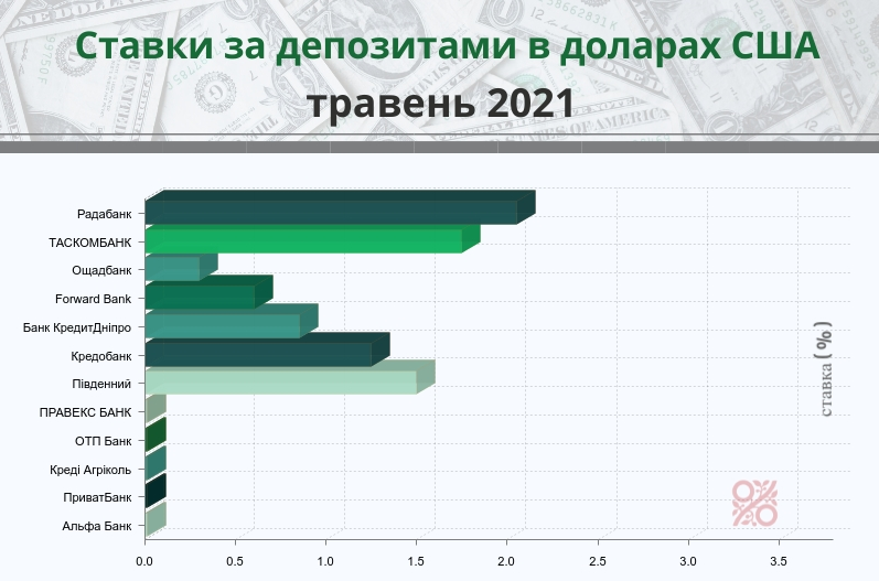У травні ставки за валютними депозитами знову демонструють легке падіння, але в більшості фінустанов ситуація залишається стабільною. Банки фіксують значення річних ставок на мінімумі, тому українцям в найближчій перспективі не варто сподіватися на великий прибуток. Maanimo проаналізував динаміку відсоткових ставок за валютними депозитами строком на 12 місяців, а також умови депозитних програм в банках України.